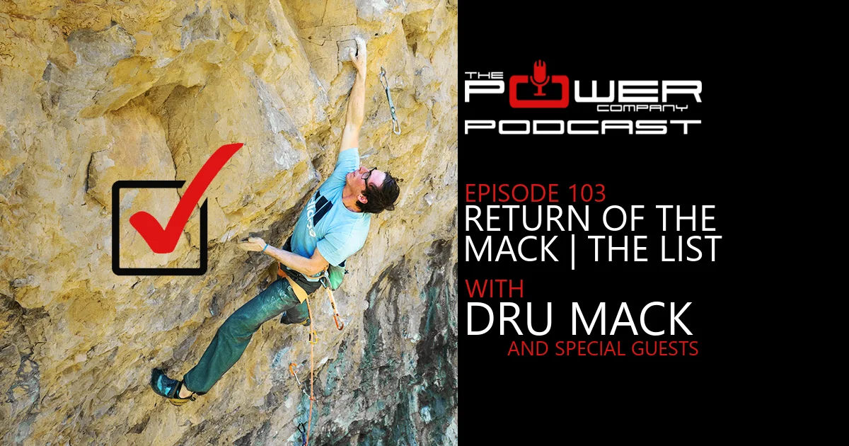 My good friend and Episode 16 guest Dru Mack stopped by during the International Climbers Festival in Lander to chat, and of course the conversation turned to climbing. He told me about a list that Jonathan Siegrist had created for him - a list that is a surefire way to make sure that Dru's development as a climber isn't lacking.